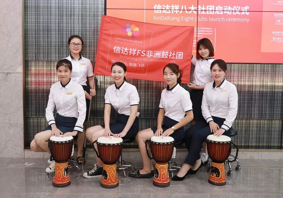 同心协力,鼓舞飞扬的《信达祥非洲鼓社团》,从心出发,用音乐触动心灵,用音乐鼓动团队,用鼓乐激发团队活力,焕发激情。热情洋溢的非洲鼓,不断变化的节奏感。每一次打击、每一个节奏、每一个跳跃的音符,谱出优美的鼓乐旋律,诠释最具凝聚力的信达祥团队。
