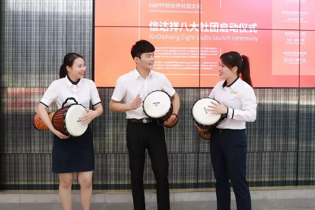 7月15日周一清晨,信达祥五星级展厅热闹非凡,在整齐划一的信达祥独特的掌声鼓舞中,在欢快激情的非洲鼓乐中,每个信达祥的小伙伴们的脸上都洋溢着灿烂快乐的笑容。今天,是信达祥八大社团正式启动的大日子,从力争卓越、勇于创新的紫牛文化,到独一无二、活力自信的掌声文化,再到快乐工作一起嗨的八大社团的正式开启,信达祥,一直在以自己的风格,打造与众不同的、敢想敢做、勇于创新的紫牛企业文化。